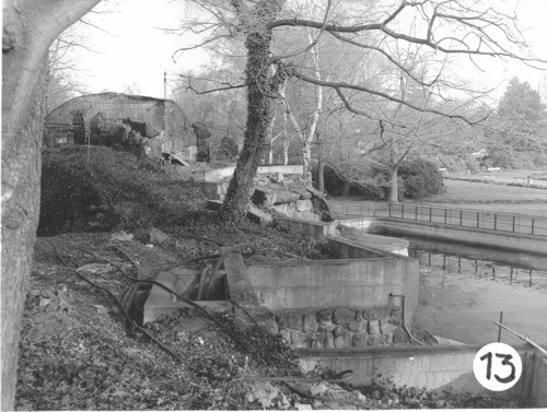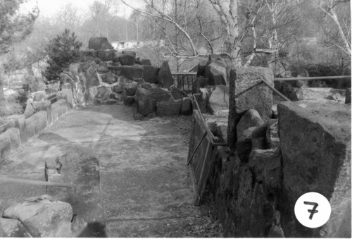 Aufnahmestandpunkt 13 Blick über den Seelöwenteich und auf die abzubrechenden Betonsockel |