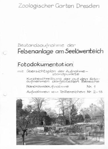 Bestandsaufnahme der Felsenanlage am Seelöwenteich umfaßt :