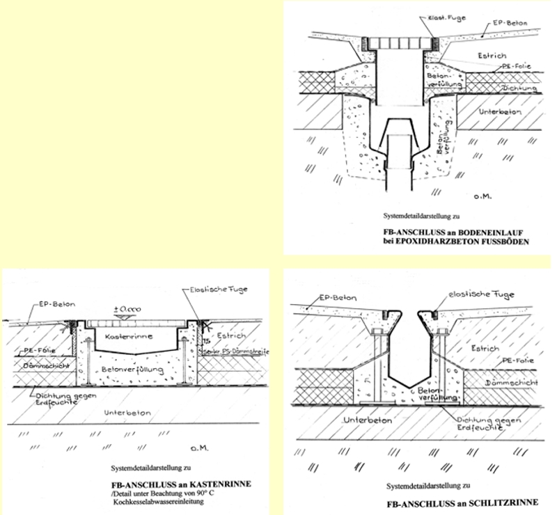 FußbodenFlächenAusbildungen, Sockel-Aufkantungen und Säureschutzbau,