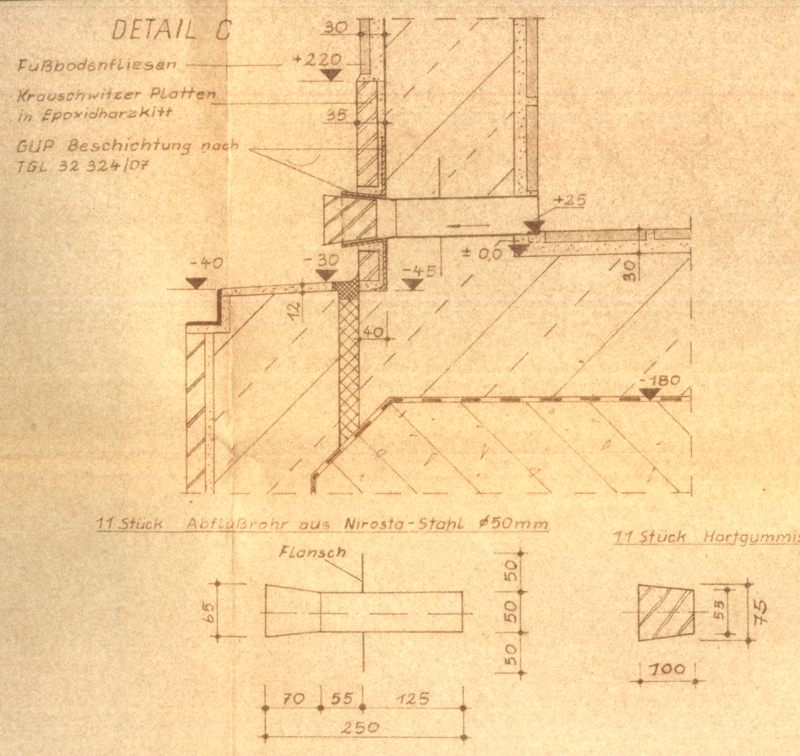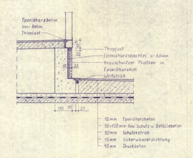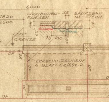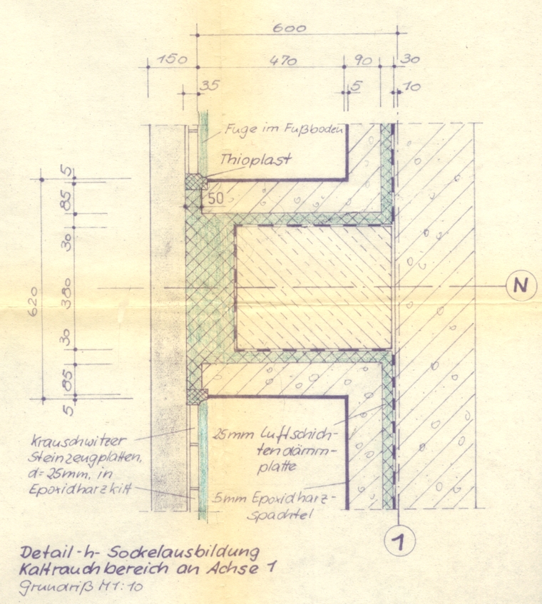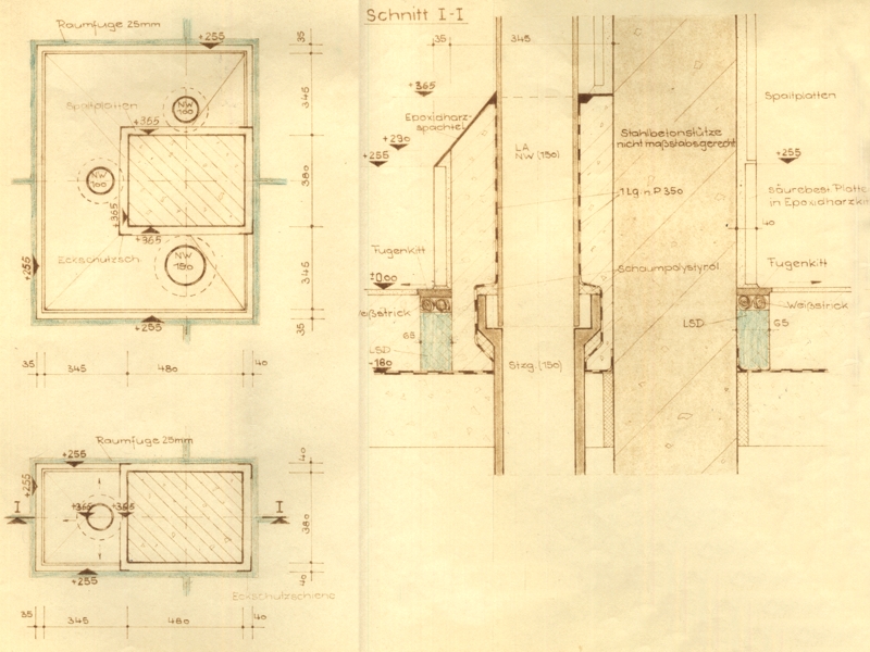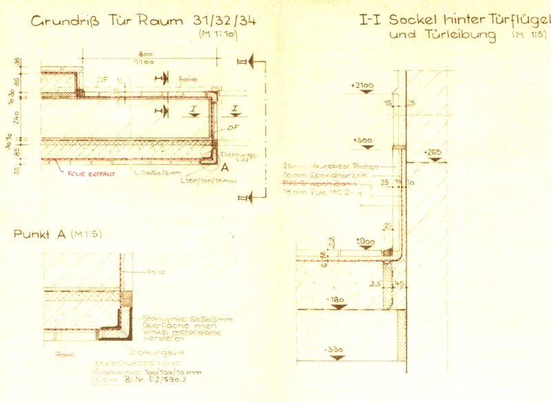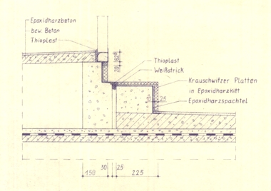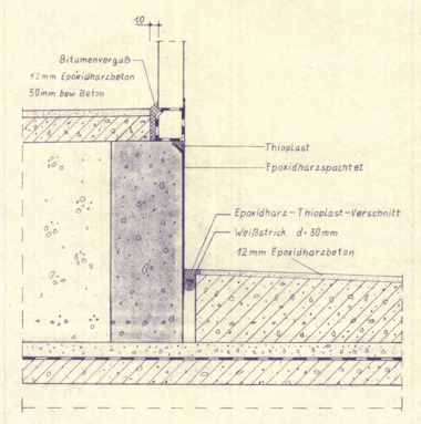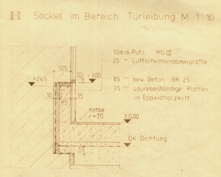 durch Fußboden und SockelAufkantung, säureschutzbaugerechte