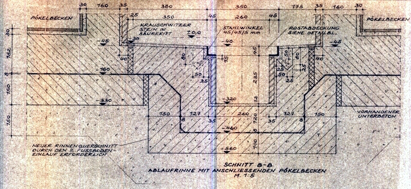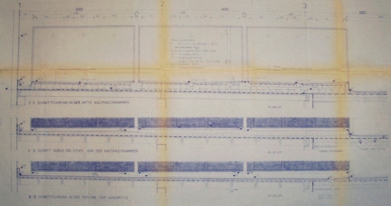 RauchKammern, FußbodenAusbildung Pökelräume, gebaute PökelBecken,