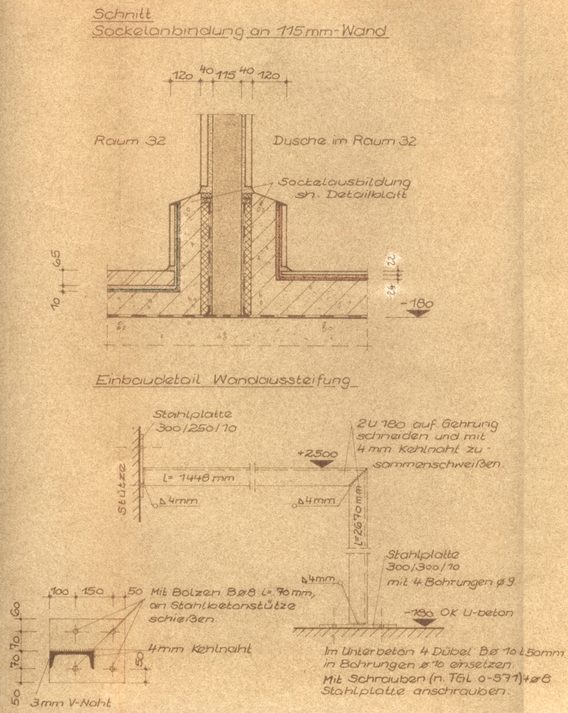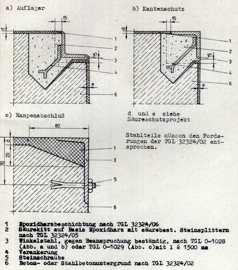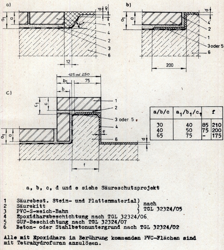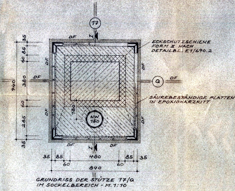 Forderung alle durch den SäureschutzBau behandelten FußbodenFlächen an allen aufgehenden Bauteilen wie Wänden, EinzelStützen etc