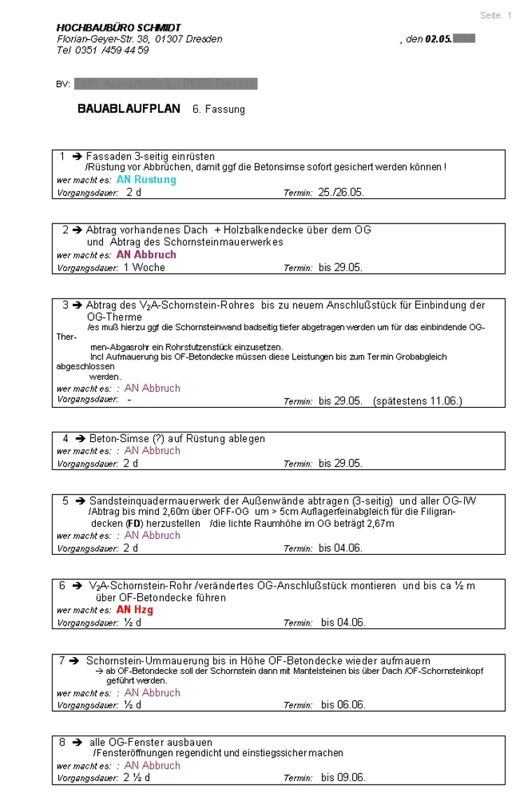 es handelt sich hier um die 9. Fassung eines Ablaufplanes für Fassade
